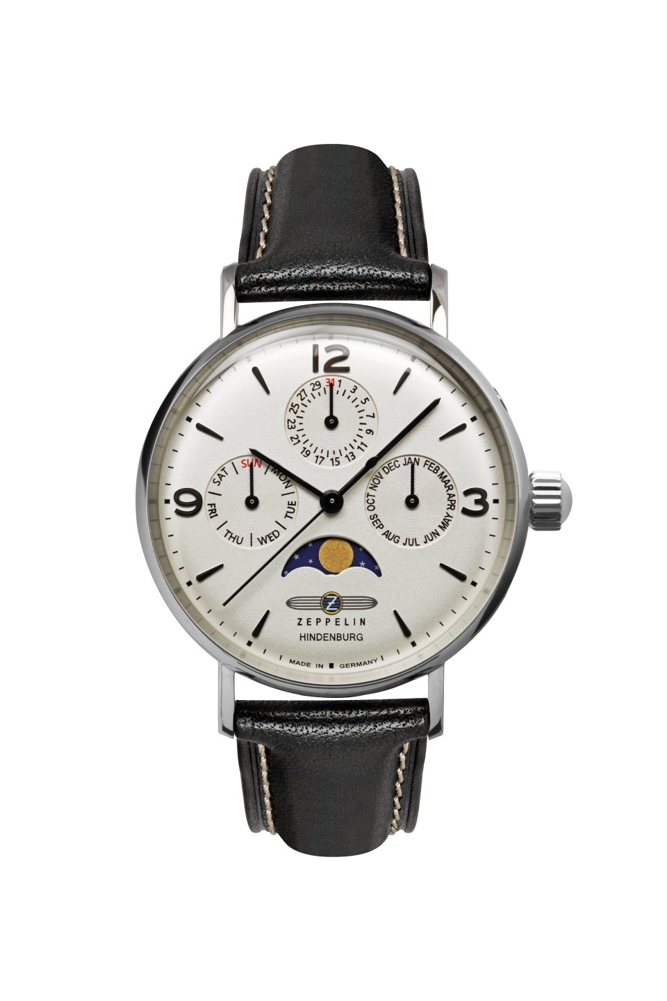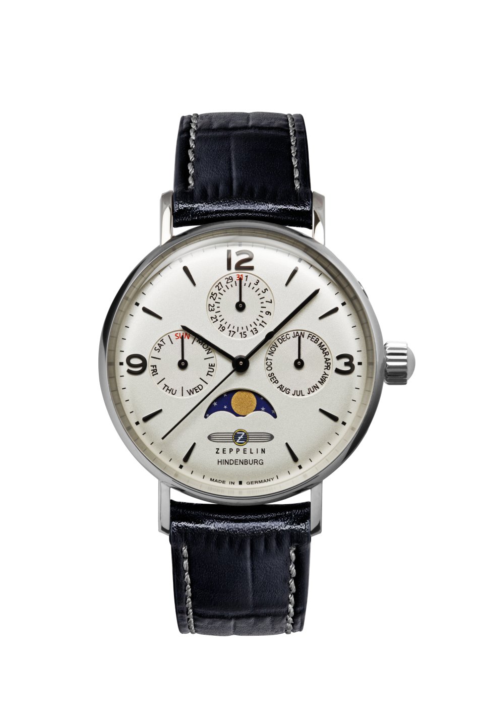 DAU, Zeppelin Hindenburg Quarz Mondphase Miyota 6P00, Steelcase wr 5atm, Mineral-K1 crystal
