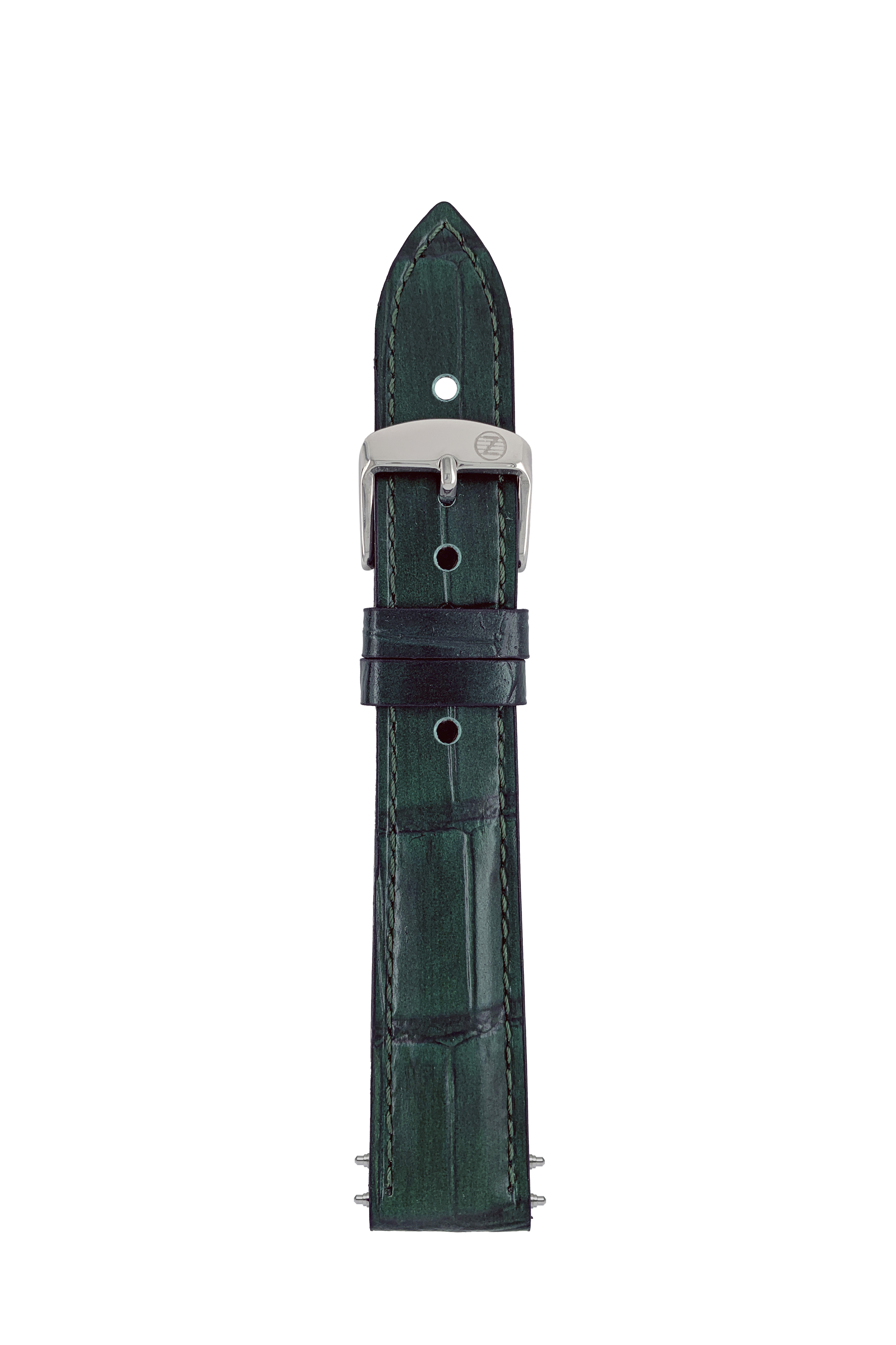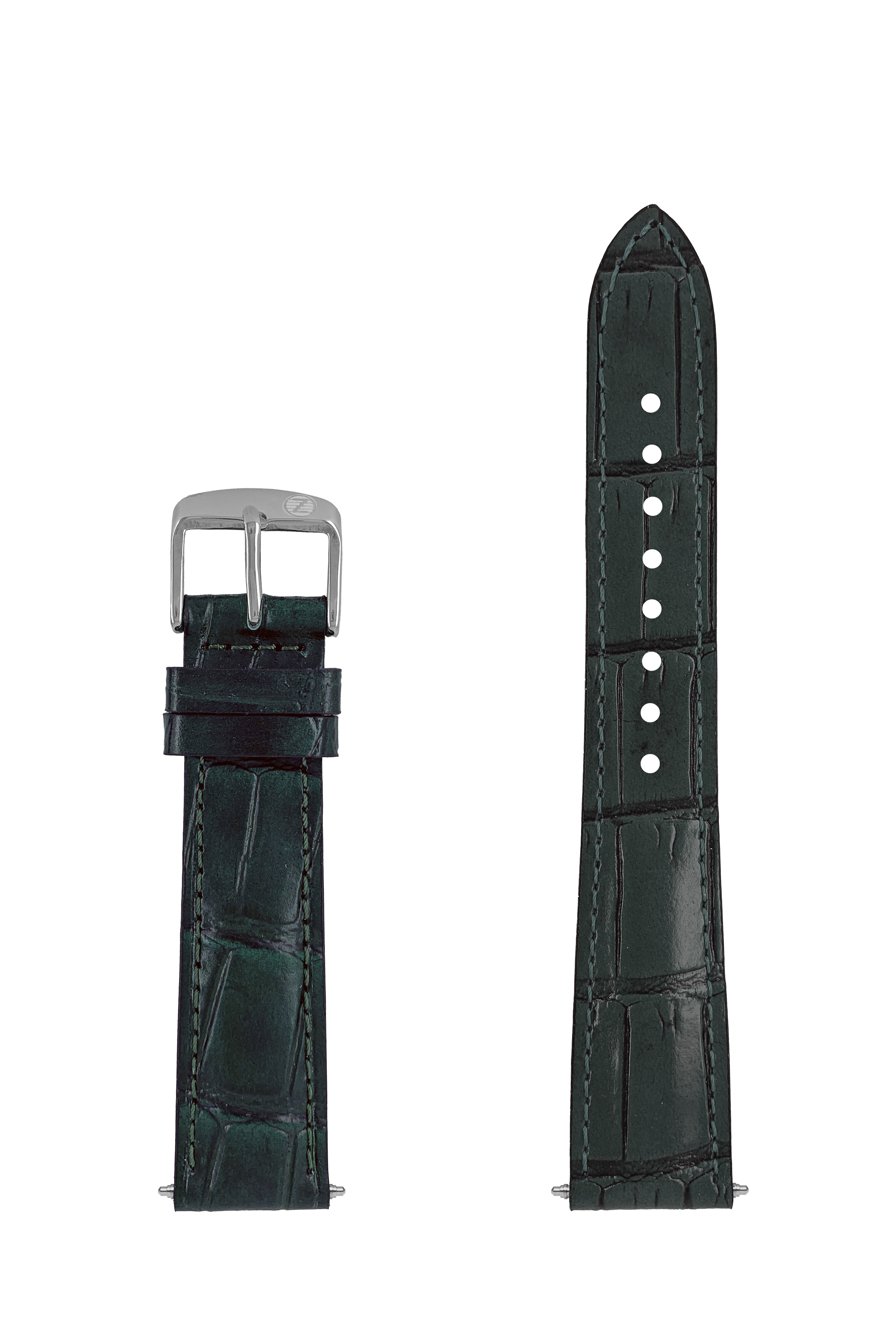 LB GM Krokostruktur d.-grün, stitchingTiT, 18/16mm, Zeppelin LZ-14 Marine 8635-4 Krokostruktur d.-grün, stitching tone in tone, Sport buckle with ZE Logo