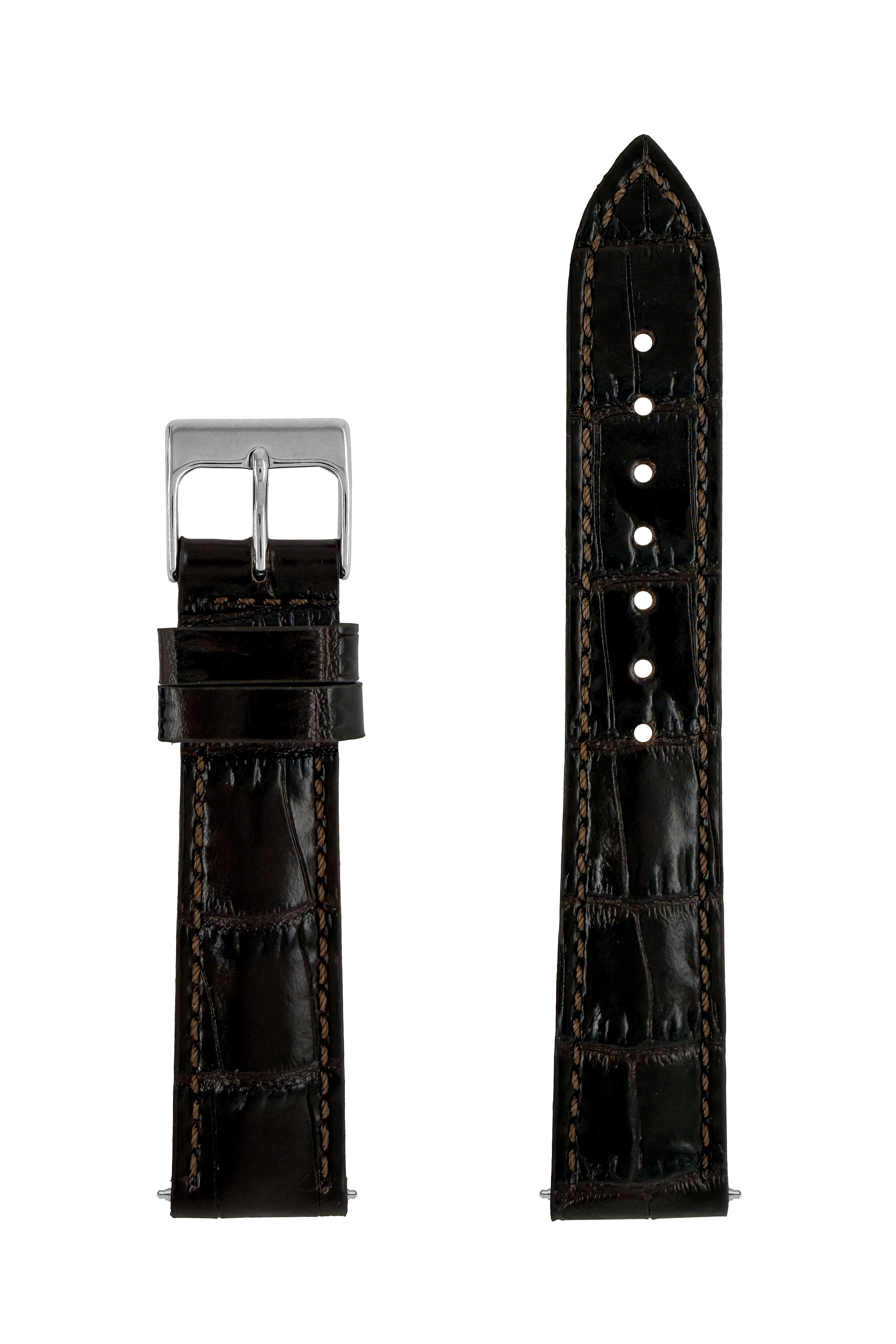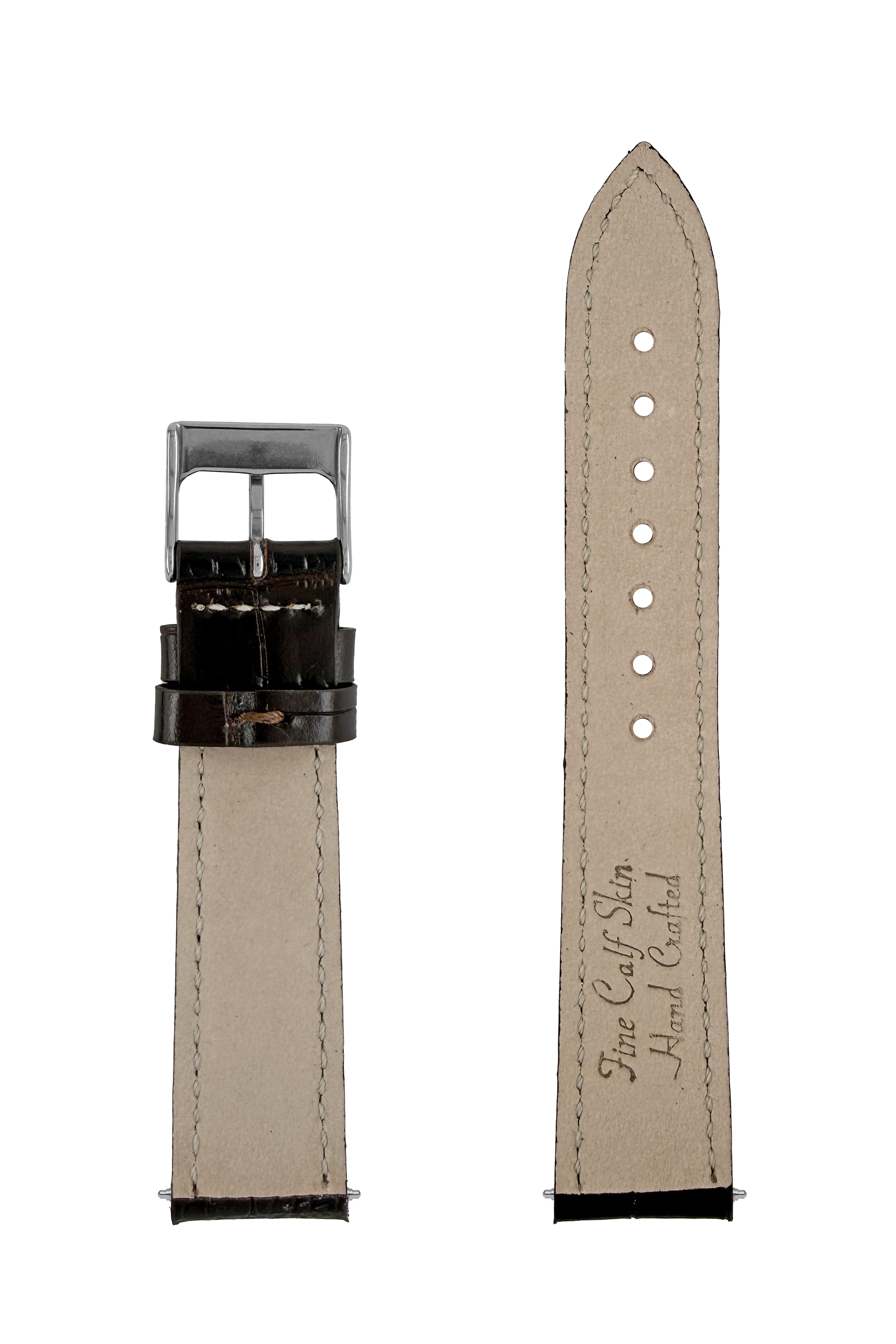 LB GM Krokostruktur d.-brown, stitching Tone in Tone, 18/16mm Krokostruktur d.-braun, stitching tone in tone, elegant buckle