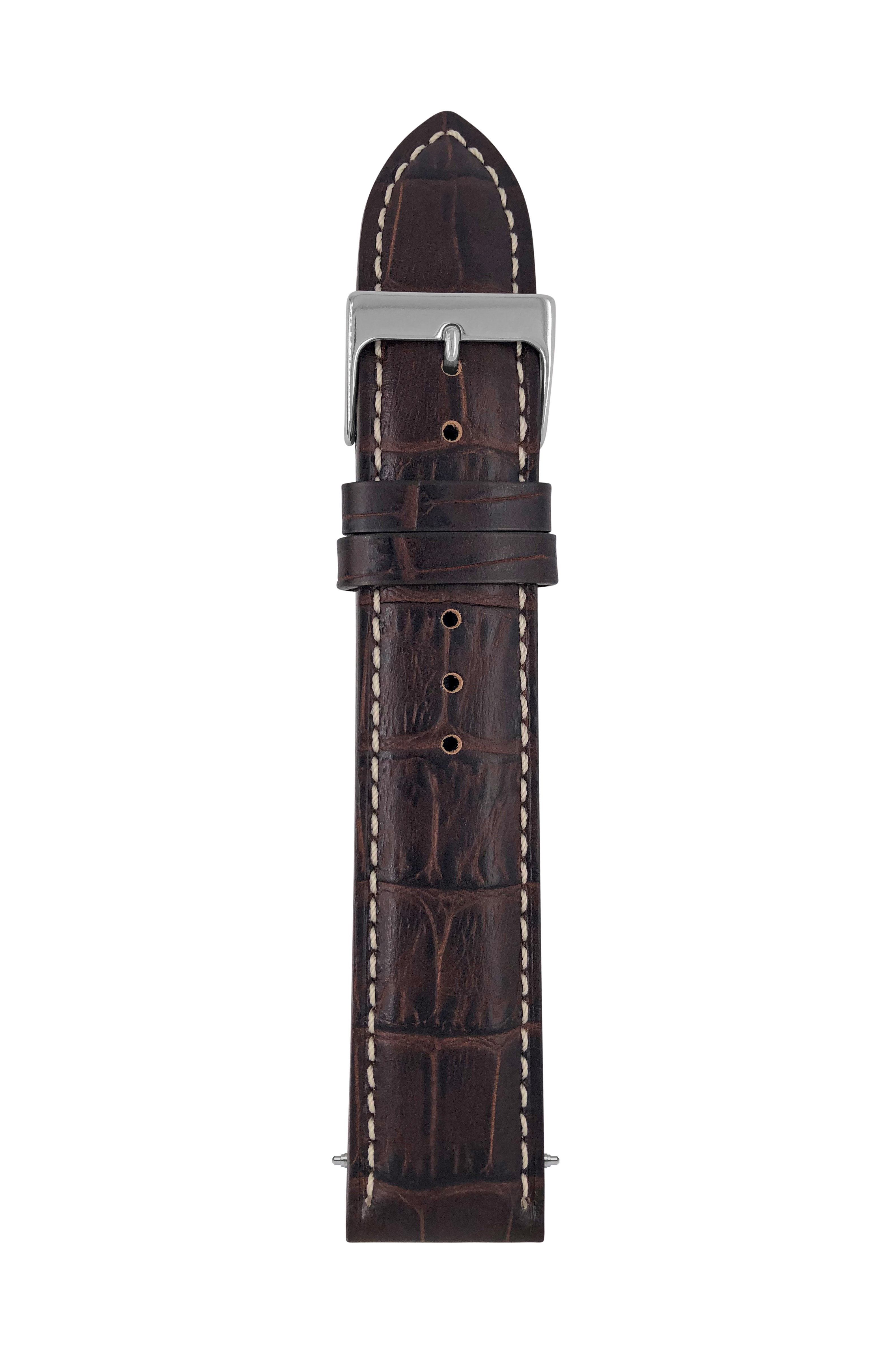 LB GM Krokostruktur d.-braun, 22/20mm, moro semi-matt, helle Naht, elegante Schließe